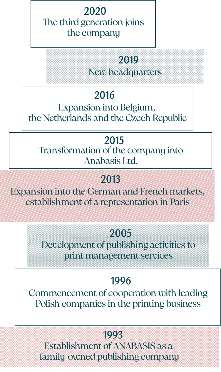 ANABASIS consists of three generations of the family working together turning their passion for books and printing into the thriving business it is today. Living up our name* we are on a journey without limits. It is a journey towards a goal, overcoming challenges and reaching new heights. We offer our services with patience and attention to details. Our company stands for openness, trust and confidence.